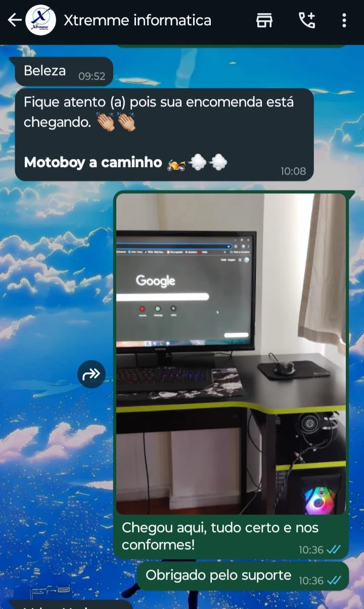 O prazo varia conforme os componentes escolhidos, mas geralmente entregamos os computadores no mesmo dia da compra.